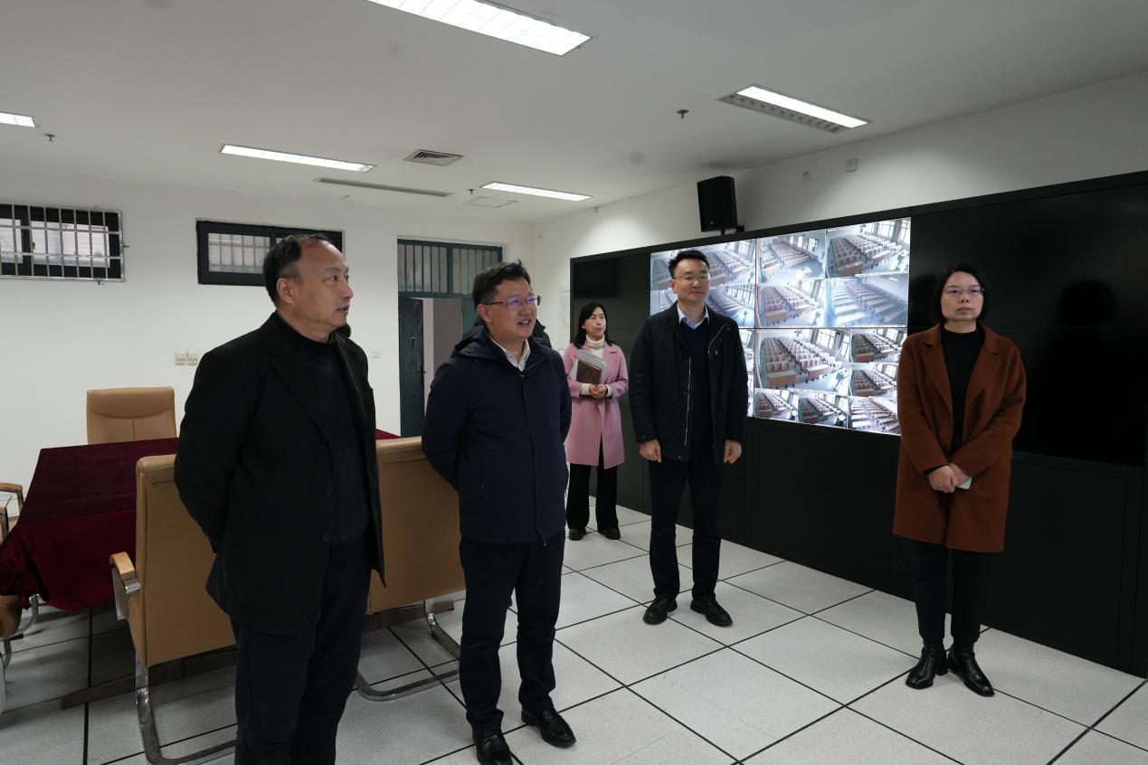 校领导在教学运行监控室通过实时监控系统详细了解学生到课情况和首日课程开展情况,同时围绕教学设备的迭代升级、教师休息室的优化改造以及教学质量的持续提升等议题,与随行人员展开了深入的交流探讨。