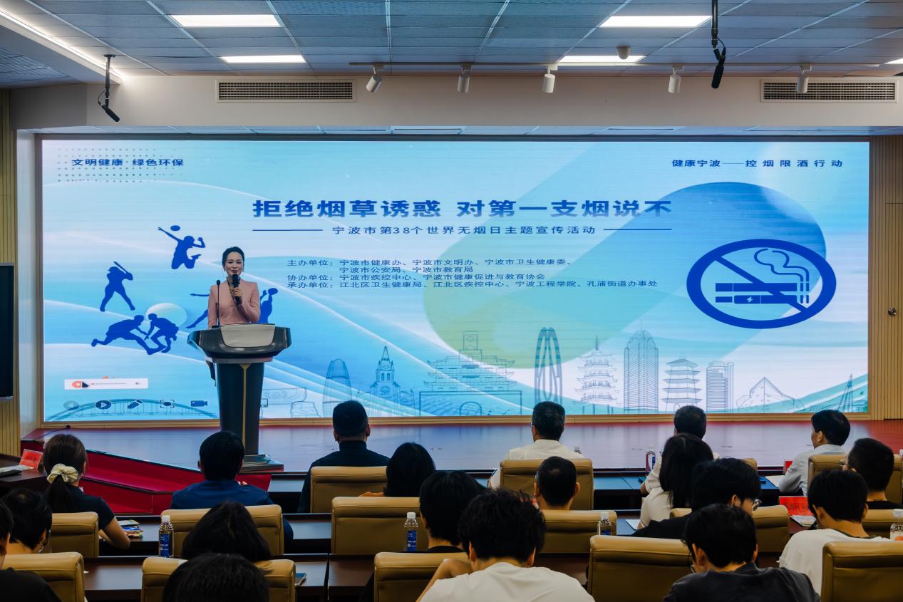 校园新闻网讯 为广泛开展控烟宣传教育,在全社会营造支持控烟、参与控烟的良好氛围,5月28日,宁波市第38个世界无烟日暨推进健康宁波控烟限酒行动主题活动在我校百慧堂举行。校党委委员、副校长徐可明,市健康办副主任、市爱国卫生委员会专职副主任周建霖及市文明办、卫健委、公安局、教育局等相关部门负责人出席了活动。本次活动旨通过无烟倡议、控烟科普讲堂等形式,为青少年控烟宣教注入新活力,吸引师生代表百余人参与。