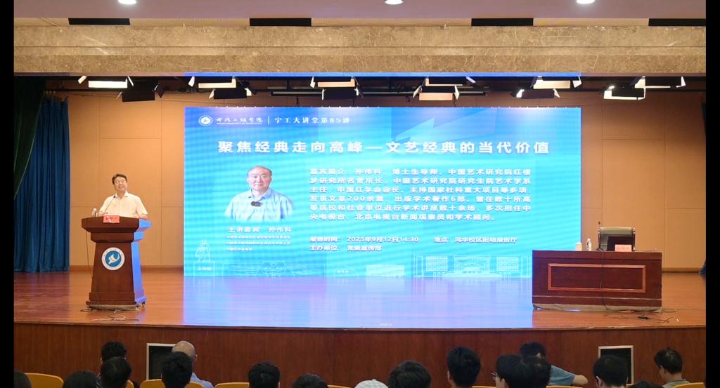校园新闻网讯 “一部《红楼梦》,为何能历经百年风雨依旧散发着独特魅力,引得无数人倾心探索,并被誉为“中国传统社会的百科全书?”9月12日下午,中国艺术研究院红楼梦研究所名誉所长、中国红学会会长孙伟科教授做客宁工大讲堂,以“聚焦经典走向高峰——文艺经典的当代价值”为题,围绕中国古典文学巨著《红楼梦》,与400余名师生展开深入交流,共同探寻经典的内涵、不朽的密码以及对当代文艺创作的深刻启示。