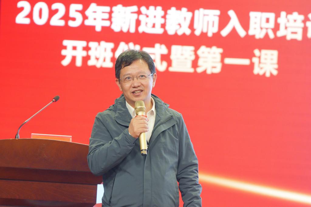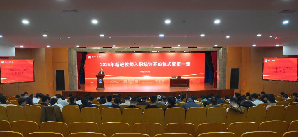 校园新闻网讯 10月27日,2025年新进教师入职培训开班仪式暨第一课在阳明报告厅举行。校党委书记冯建波、校长邵千钧、副校长陈志荣,校党委委员、人事处处长陈晓平出席开班仪式。宣传部、教务处等相关部门负责人以及全体新教师参加。