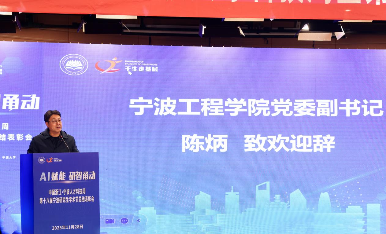 校园新闻网讯 11月28日下午,2025中国浙江·宁波人才科技周暨第十八届宁波研究生学术节总结表彰会在我校阳明国际会议中心举行。我校党委副书记陈炳、市社科联党组副书记、副主席吴艳芳,宁波市科协科创部三级调研员杜晓华等出席会议。学校研究生处负责人、研究生所在学院分管学生工作负责人、研究生辅导员以及13家在甬研究生培养高校和科研院所的教师及研究生代表共400余人参会。