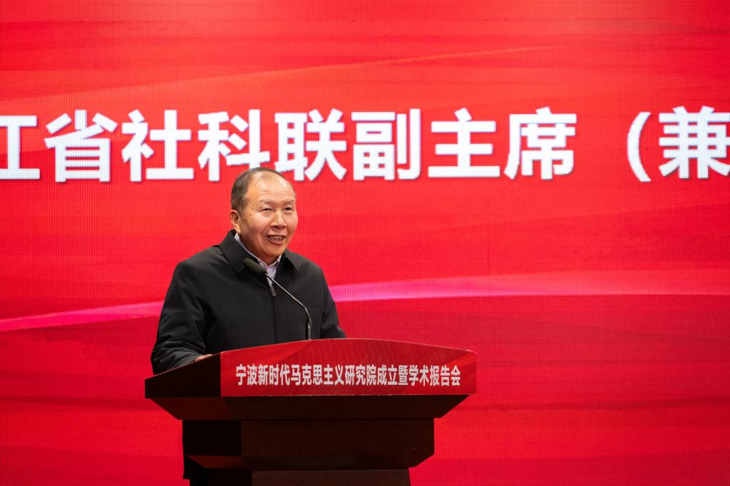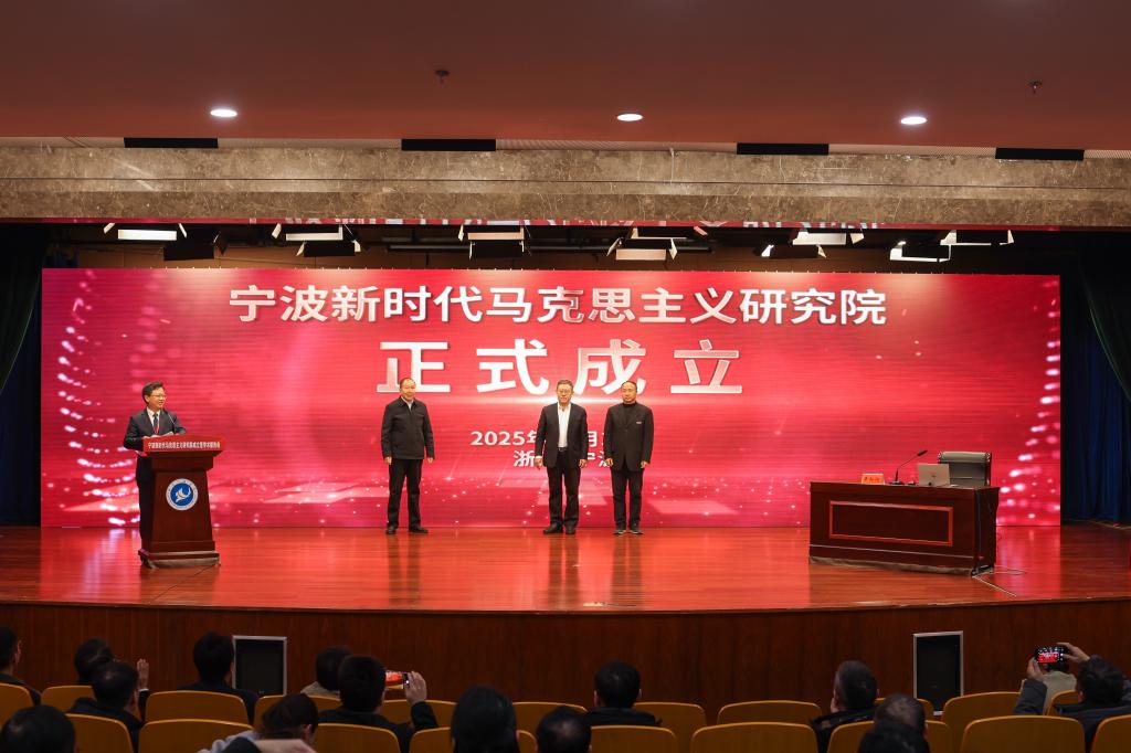 校园新闻网讯 12月28日下午,宁波新时代马克思主义研究院成立暨学术报告会在风华校区阳明报告厅举行,十四届全国人大代表、中国社科院马克思主义研究院原党委书记、院长、中国历史唯物主义学会会长辛向阳教授,中共中央党校(国家行政学院)教授、党建教研部原副主任戴焰军教授,浙江省社科联党组成员、副主席屠春飞,宁波市委宣传部副部长陈印,浙江省社科联副主席(兼)、宁波市社科联(市社科院)主席(院长)、党组书记傅晓,我校党委书记冯建波,党委副书记陈炳等出席会议。会议由校长邵千钧主持。