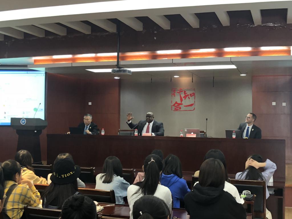 刘凤山介绍了美国特拉华州立大学的发展历史,学校科研优势和校园环境。布鲁迈尔院长向学生介绍了中文和英文语言的差异和学习方法。