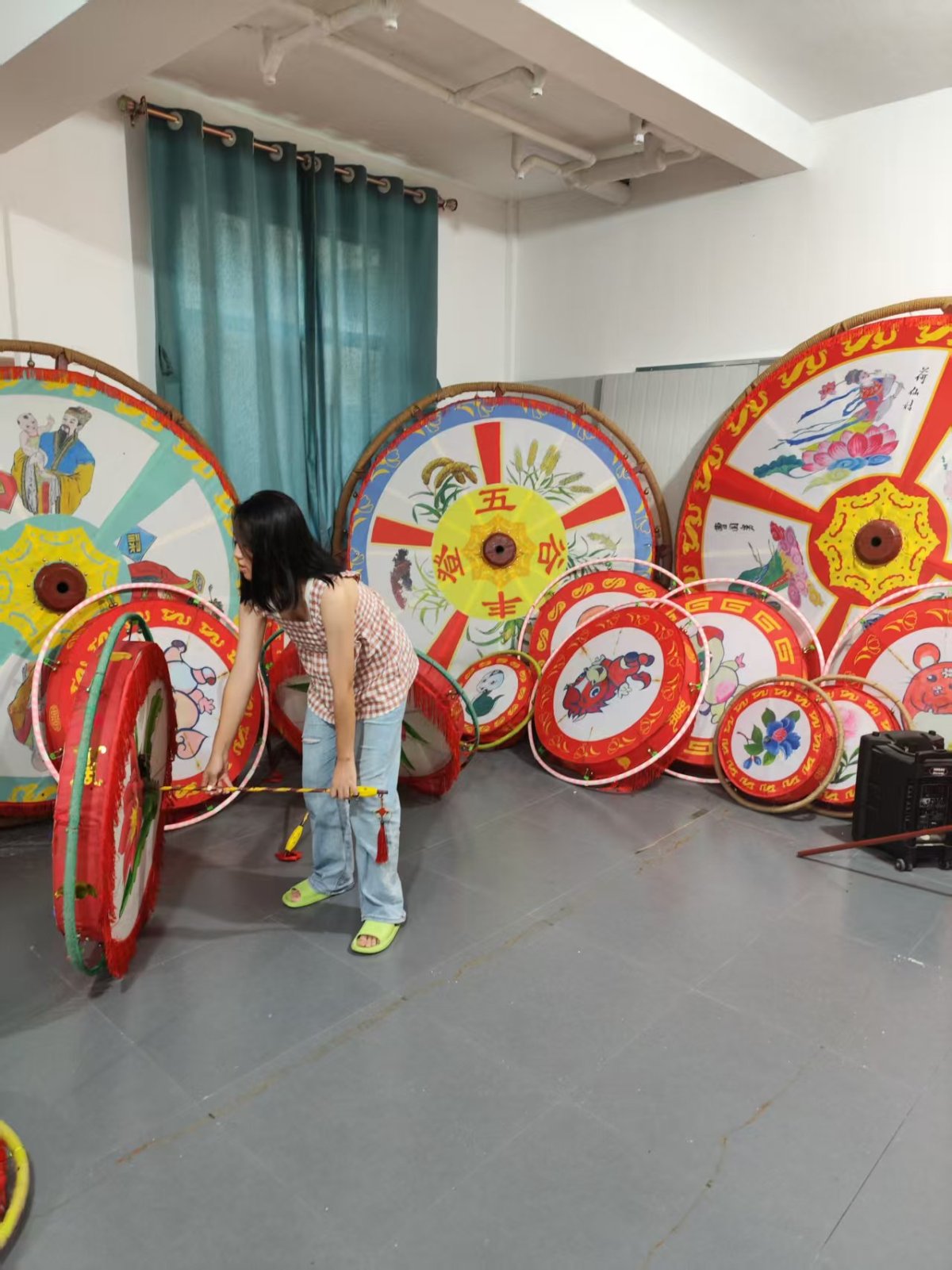 刘佩珊在检查马啸滚灯。受访者供图