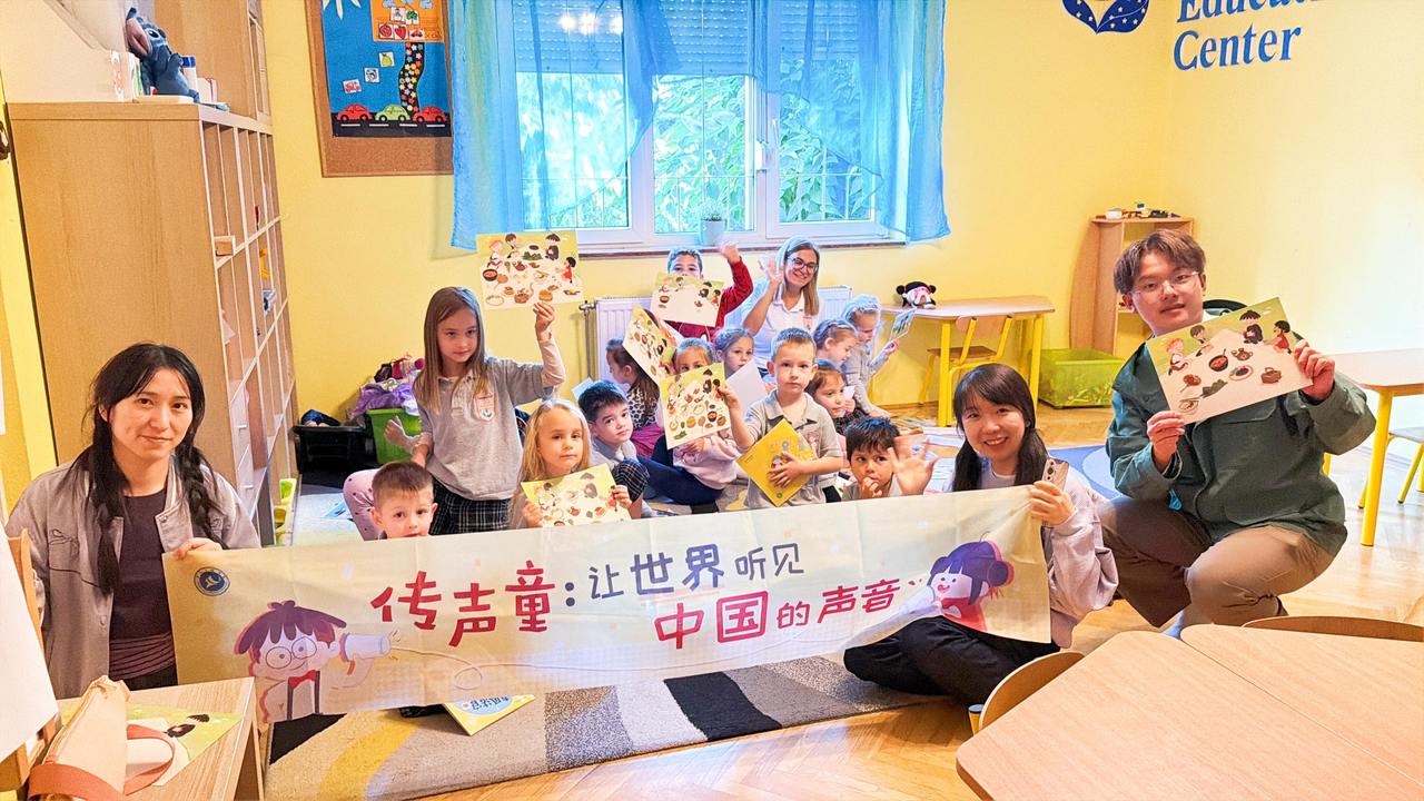 杜莹在布达佩斯剑桥运动幼儿园与孩子们分享绘本。受访者供图