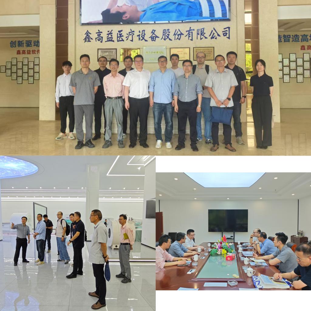 在鑫高益医疗设备股份有限公司,博士团深入研发实验室进行考察,并观看企业宣传片,了解企业在永磁磁共振设备领域的技术布局。座谈会上,企业负责人对博士团一行的到来表示热烈欢迎,介绍研发团队现状以及与高校院所合作情况,期待以此次活动为契机,与学校开展多元化合作。