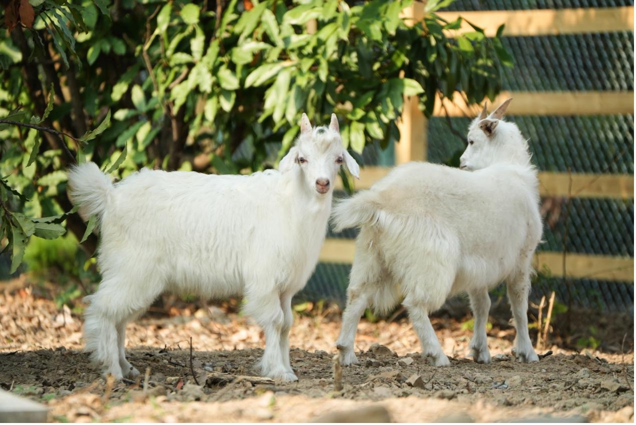 圆滚滚的身材、粉粉的小鼻子、晃悠悠的小尾巴,香猪简直是“快乐制造机”!它们自带淡淡的清香,干净又活泼,总是迈着小短腿在围栏里追跑打闹,偶尔停下来对着你“哼哼”叫,仿佛在分享开心事;作为“纤维软黄金”的生产者,绒山羊的毛发浓密柔软,摸起来像云朵般细腻。绒山羊合群又亲人,会成群结队地靠近围栏与师生互动,伸出舌头舔舐掌心的瞬间,所有的压力仿佛都被这柔软的触感融化了;矮马身高通常不超过1.1米,四肢短粗健壮,毛发柔顺有光泽,圆溜溜的大眼睛像含着星星,温顺又亲人。它们性格沉稳温和,不仅能安静地接受抚摸,还会用小脑袋轻轻蹭蹭你的手心,瞬间治愈所有烦躁。