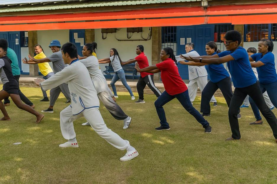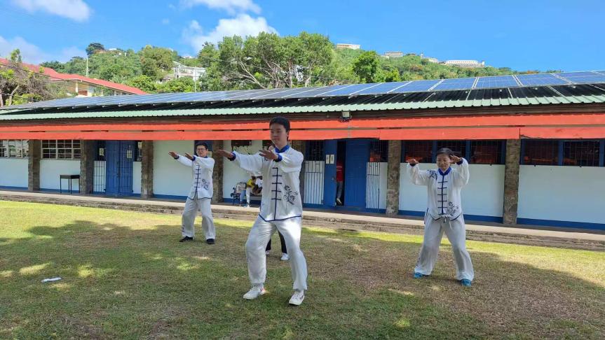 表演结束后,孔院教师还带领现场观众体验太极拳。参与体验的老师和学生们感慨道:“这种运动不需要剧烈发力,却能让身体得到舒展,非常适合日常放松和健康管理。”玛丽秀社区大学的一位老师特别提及:“孔子学院带来的太极拳,完美契合了我们关注身心健康的活动宗旨,为格林纳达健康养生提供了新选择。”