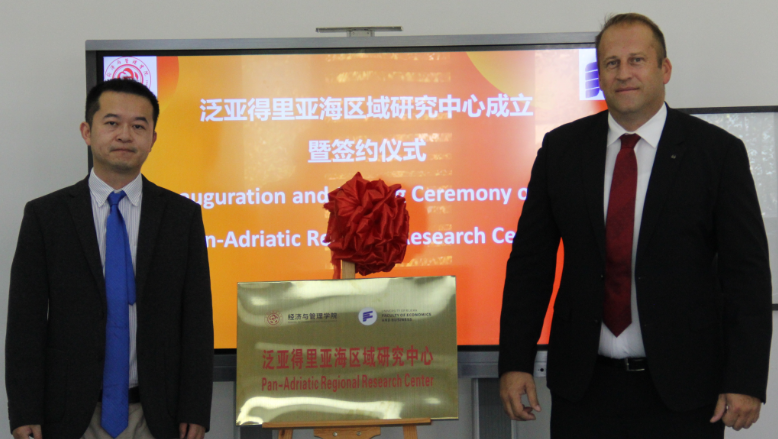 9月26日,在经管学院举办了泛亚得里亚海区域研究中心成立暨签约仪式,吴昊代表学校对于两学院的合作推进表示祝贺,期待两院合作持续发展。傅海威与Sasa Drezgić签订了学院间合作备忘录(内含共建研究中心、科研研究、老师互访、学生交换等具体合作主题),并共同为泛亚得里亚海区域研究中心进行揭牌。