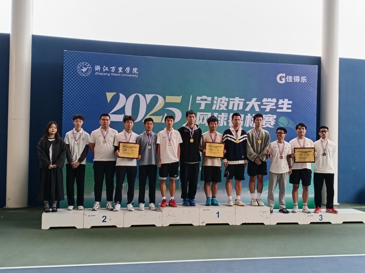 校园新闻网讯 11月1-2日,2025年宁波市大学生网球锦标赛在浙江万里学院落下帷幕。本次赛事由宁波市教育局、宁波市体育局联合主办 ,吸引了来自宁波大学、万里学院等全市14所高校的150余名运动员参与,展开了为期两天的激烈比拼。在学校的全力支持下和体育教学部教练的指导下,我校网球队在比赛中团结一心、奋力拼搏,展现出了高超的竞技水平和良好的体育精神,获得男子团体第一。