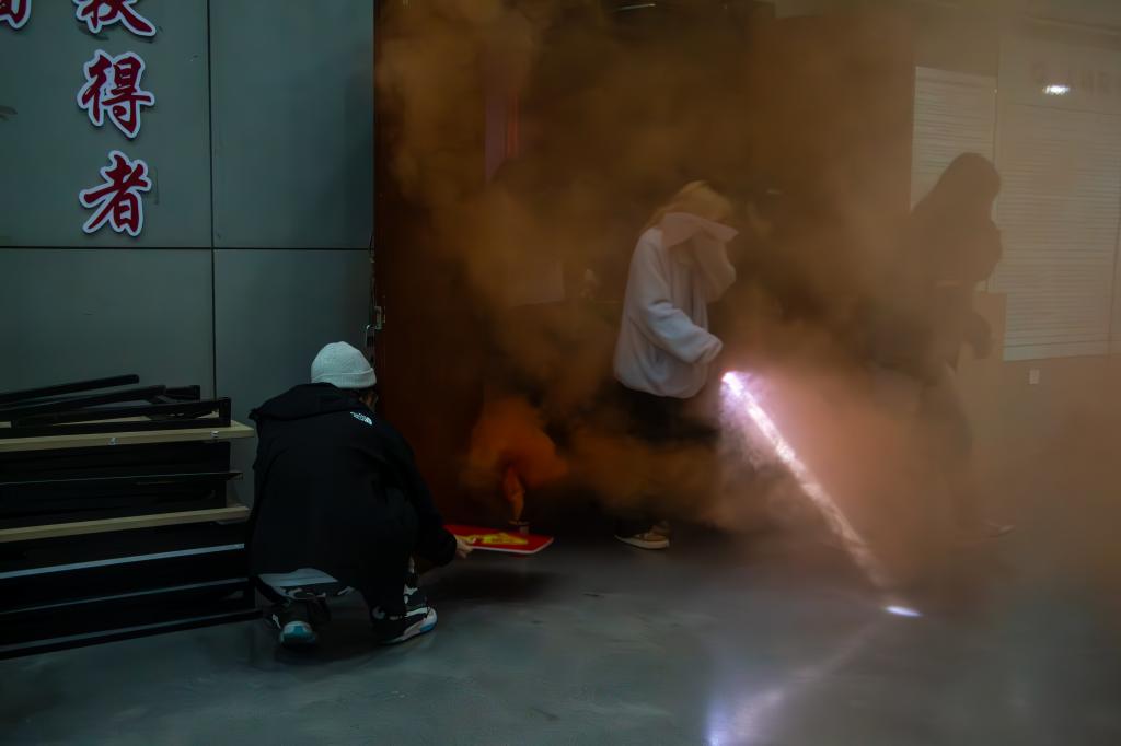 下午4点50分,消防演练正式拉开帷幕。随着火灾警报声响起,剧院内模拟烟雾弥漫,现场计时同步开始。在紧张而有序的氛围中,全体师生迅速反应,严格按照预先指导,用湿毛巾或手捂住口鼻,弯腰低姿,沿指定疏散路线快速、有序撤离。各区域负责人与引导人员全程在岗,沉着指挥,确保撤离过程无缝衔接、安全高效。待所有人员确认撤离后,工作人员最后离场。