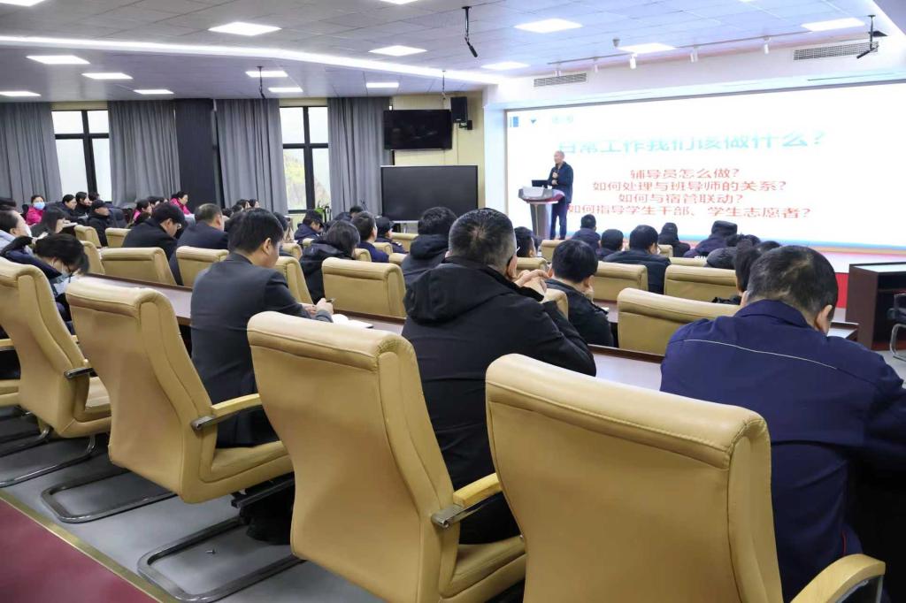 校园新闻网讯 为深入推进平安校园建设,进一步压实校园安全管理责任,强化辅导员、宿管员、安保员“三员”协同联动机制,全面提升校园安全一线工作人员的责任意识与突发事件应急处置能力,切实保障师生生命财产安全和校园和谐稳定,12月24日下午14:30,我校特邀浙大宁波理工学院安保部部长、多次参加浙江省高校等级平安校园考评工作的专家叶卫树,开展“校园安全管理及突发性事件处置”专题讲座。本次讲座由教师工作部、安保部、学工部和校建处联合主办,研究生处、翠柏校区管委会相关单位负责人,各二级学院辅导员、校卫队员及宿管工作人员等90余人参加培训。