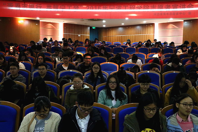 校园新闻网讯 12月5日是国际志愿者日。12月4日晚,2016宁波工程学院志愿者分享会在阶三201举行。九龙湖黄背包志愿服务队执行队长、镇海区志愿者协会秘书长秦红波,宁波大学、宁波大学科技学院等五所宁波市内高校的青年志愿者协会,以及我校各分院的青年志愿者中心出席了本次志愿分享会。