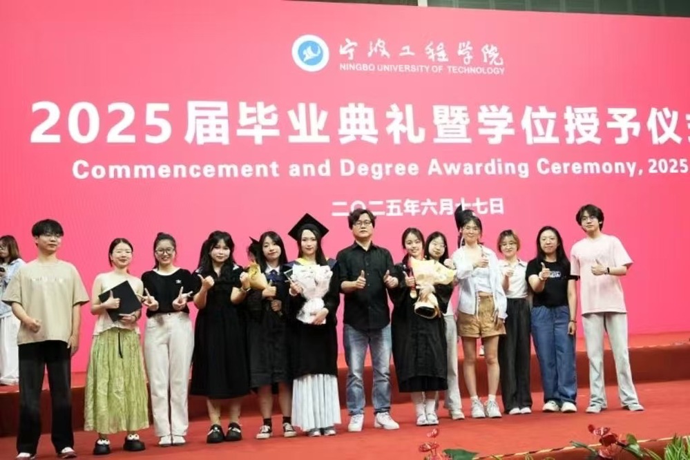 在吴泓均“功成不必在我”的育人理念滋养下,纸喇叭工作室不仅硕果累累,更形成了生生不息的传承生态。陆鼎、沈滟滟等优秀学子主动反哺团队,将经验与精神传递给后来者。工作室累计斩获奖项213项,授权专利67项,孵化学生项目17项,成为宁波工程学院首个名师工作室,也是首个两次夺得中国国际“互联网+”大学生创新创业大赛金奖的团队!这三年三届闪耀的国赛奖杯,正是吴泓均最朴实教育信仰的生动映照:他坚信教育不是雕刻完美的作品,而是点燃心火,让每个学生带着被知识和创新精神照亮的灵魂,勇敢地走向更广阔的天地。如今,当他的学生们在实验室、在车间、在异国他乡继续闪耀光芒时,吴泓均最初点燃的那簇星火,早已化作漫天璀璨的星辰,照亮着更多宁工学子的创新征途。