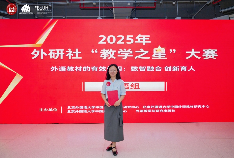 作为学院“以赛促教”巾帼文明岗的核心成员,俞丽艳在教学竞赛领域屡创佳绩。从2017年到2025年,她五次征战外研社“教学之星”大赛,四次闯入总决赛,两次摘得最高荣誉。她的教学设计以产出导向法为核心,将创新理念融入真实课堂展示,用生动的教学案例和精彩的课堂互动,赢得了评委的高度认可。对她而言,竞赛不仅是荣誉的争夺,更是学习与成长的契机。她将竞赛中积累的经验反哺日常教学,带动学院教师团队掀起“以赛促教、以教促学”的热潮,让整个德语教学团队在交流与切磋中不断进步。